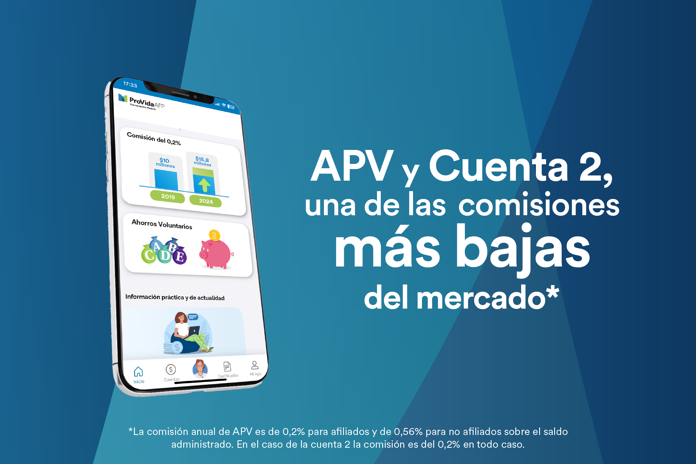 Trabajemos juntos para cumplir tus metas: Si buscas aumentar tu pensión, un APV es buena opción. Si quieres viajar, comprar un auto o ahorrar para emergencias, la cuenta 2 es para ti.