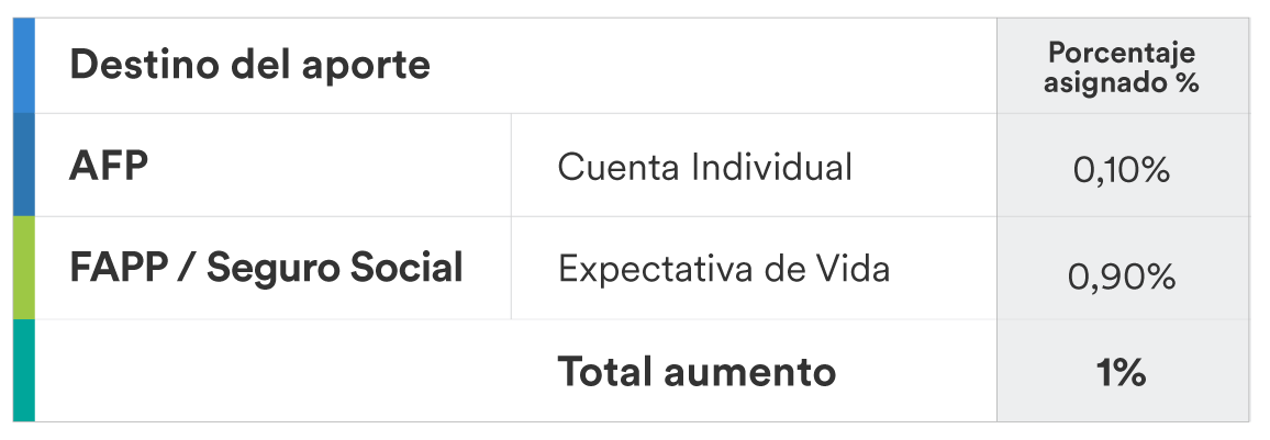 A partir del quinto mes después de la publicación de la ley, la cotización a cargo del empleador aumentará gradualmente hasta llegar al 8,5%. De este porcentaje, el 4,5% irá a la cuenta individual en la AFP, y el 4% restante se destinará a un fondo administrado por el Estado, llamado Fondo Autónomo de Protección Previsional (FAPP).